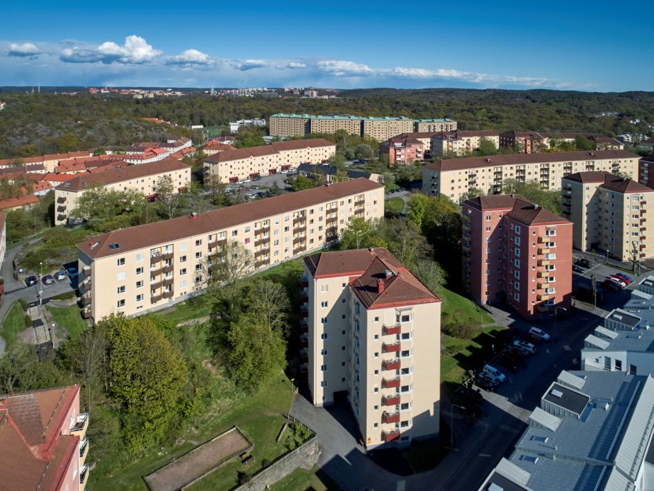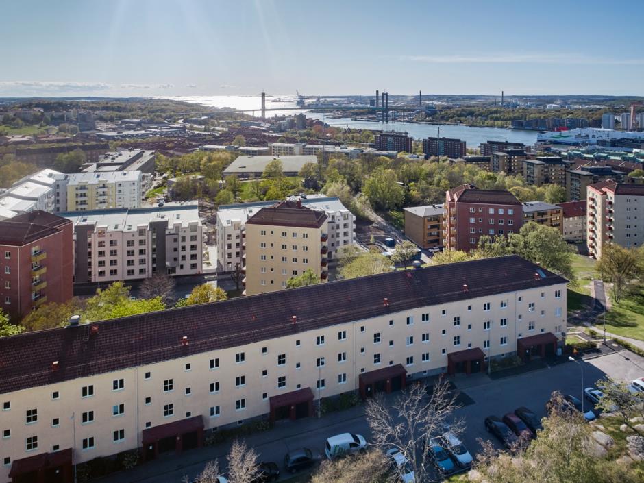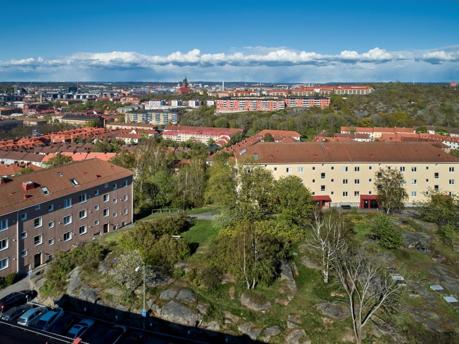 Högt ovanför staden på Gråbergets topp ligger den här tvåan. Lägenheten är oerhört välplanerad med väldisponerade rum, gott om inbyggd förvaring och ljusinsläpp från både öster och väster. Köket är lättarbetat och rymmer ett rejält matbord och för den som önskar ryms det ett matsalsbord även i vardagsrummet. Från sovrummet når man lägenhetens soliga västerbalkong med utsikt bort mot Älvsborgsbron. Lägenheten har vårdats väl under åren men ett visst renoveringsbehov finns.