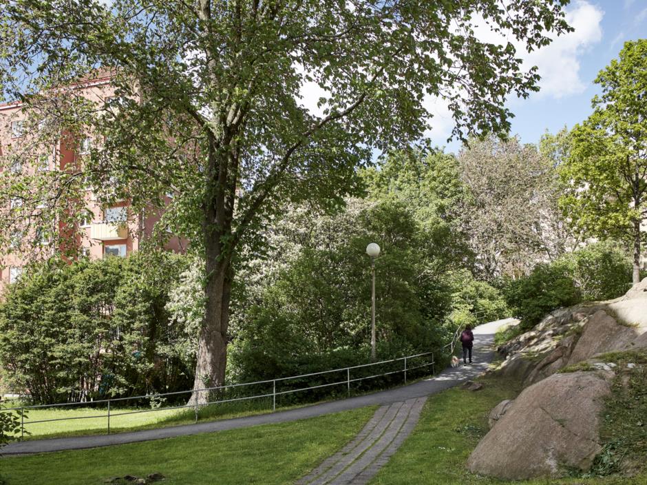 Här bor man i en mycket stor och stabil HSB-förening vars putsade hus ligger inbäddad i en lummig parkmiljö. Här finns gott om gemensamhetsutrymmen så som en fint renoverad bastu med tillhörande relaxavdelning, två gästlägenheter, snickeri och föreningslokal. Från berget finns flera vägar i olika storlekar som leder till de olika kringområdena och både Kungsladugård, Chapmans Torg, Slottsskogen och Såggatan nås snabbare än vad man kan tro.