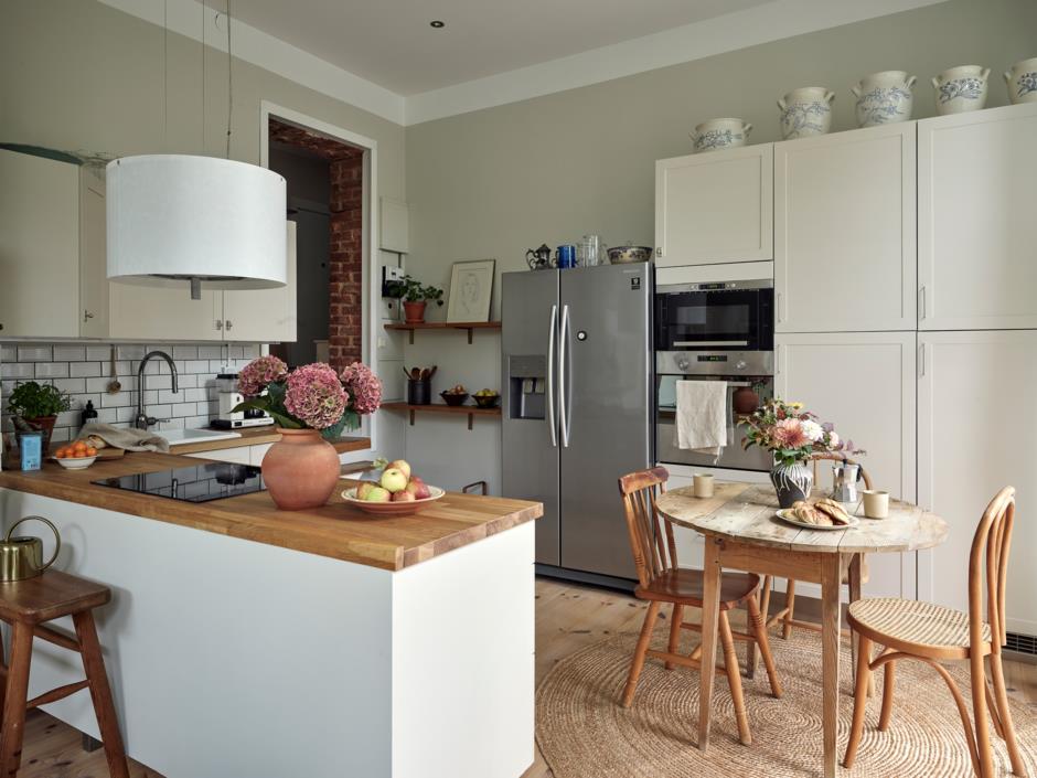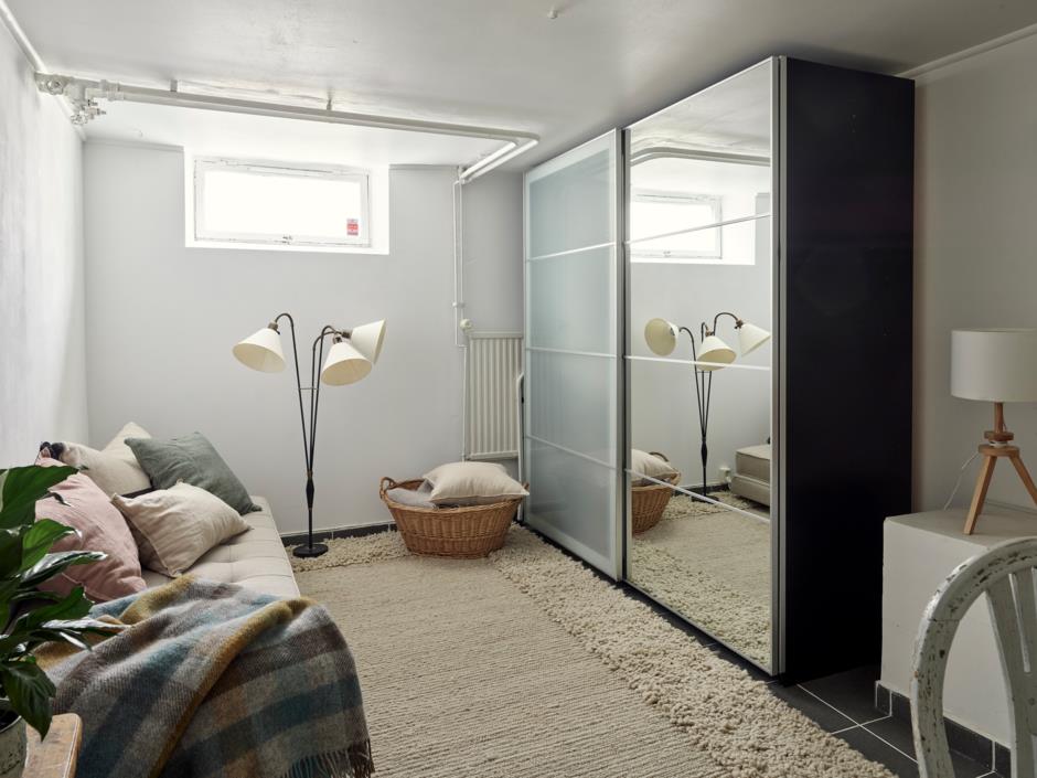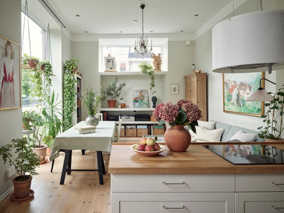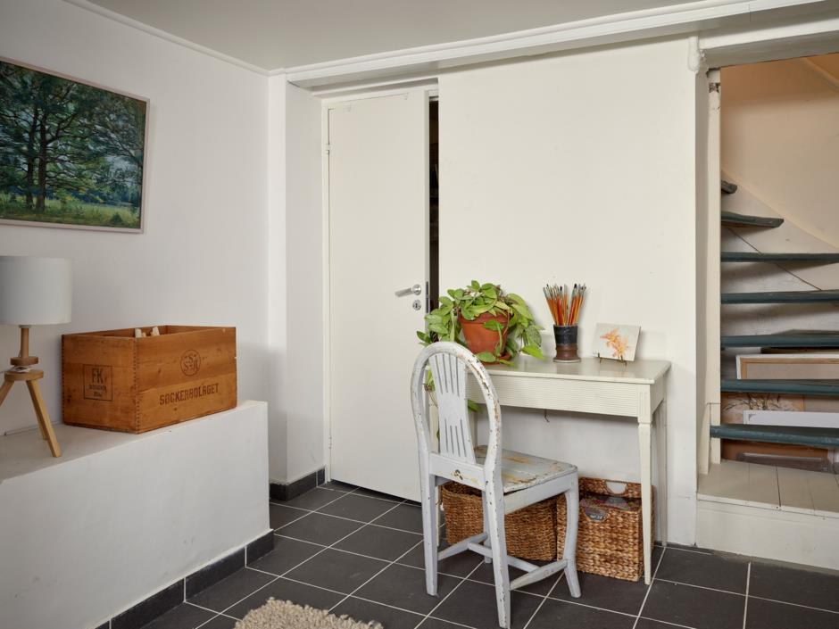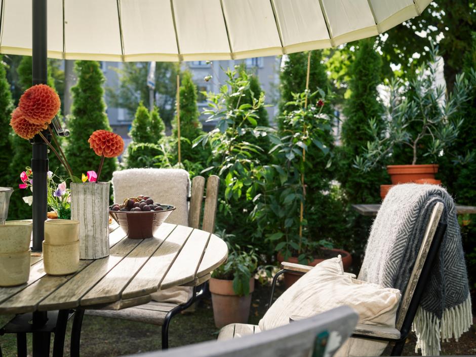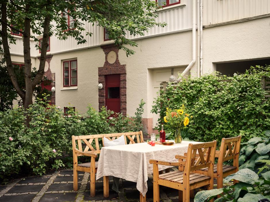 I ett av Kungsladugårds charmiga storgårdskvarter ligger den här helt unika två och en halvan. Kök och vardagsrum ligger med öppen planlösning i en tidigare butikslokal med egen ingång från förträdgården. Här är över tre meter i takhöjd och de stora fönsterpartierna gör att ljuset flödar in. Lägenhetens sovrum ligger lugnt och avskilt en halvtrappa upp från de sociala delarna och i källaren finns ett extrarum som passar bra som till exempel arbetsrum. Utanför dörren finns den vackra förträdgården med gott om plats för odling och trädgårdsliv i soligt söderläge. Här finns flera sorters rosor, perenner och träd som på våren översållas av blommor. En tujahäck skärmar av mot gatan och skänker skugga de varmaste dagarna.