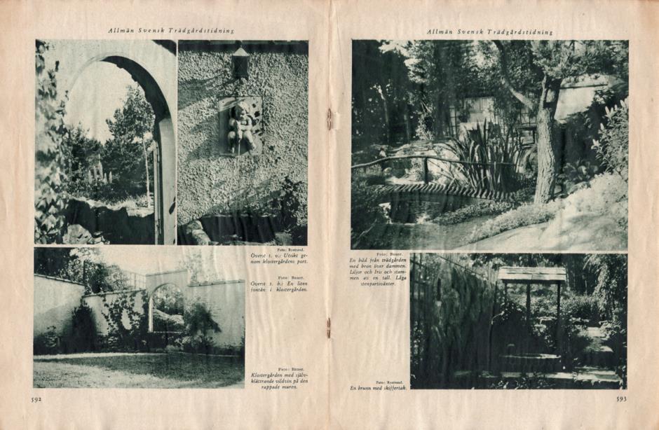 Trädgården skapades av de första ägarna - familjen Rystrand - som själva ritade en vacker naturträdgård med näckrosdamm, örtträdgård och slingrande stigar. Utanför söderfasaden byggdes en klosterträdgård med två meter hög rappad mur som ger fint skyddat och soligt läge. Här har det funnits en porlande fontän i form av en kerub. Spåren av denna vackra trädgård finns kvar och för den med trädgårdsintresse finns alla möjligheter att skapa sig en fantastik grön oas.